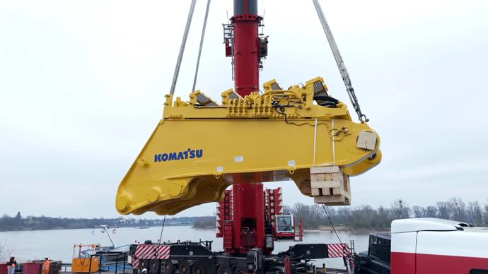Cette construction historique s'est déroulée au cours de l'hiver 2025, moins d'un an après qu'Équipement SMS et Komatsu Germany Mining Division (KGM) aient annoncé la PC9000. À une mine dans le nord de l'Alberta, l'équipe de construction d'Équipement SMS a travaillé aux côtés des ingénieurs de Komatsu pour mener à bien l'assemblage sans aucun incident, ce qui témoigne de l'expertise, de la discipline et de l'engagement sans faille de l'équipe collective en matière de sécurité.